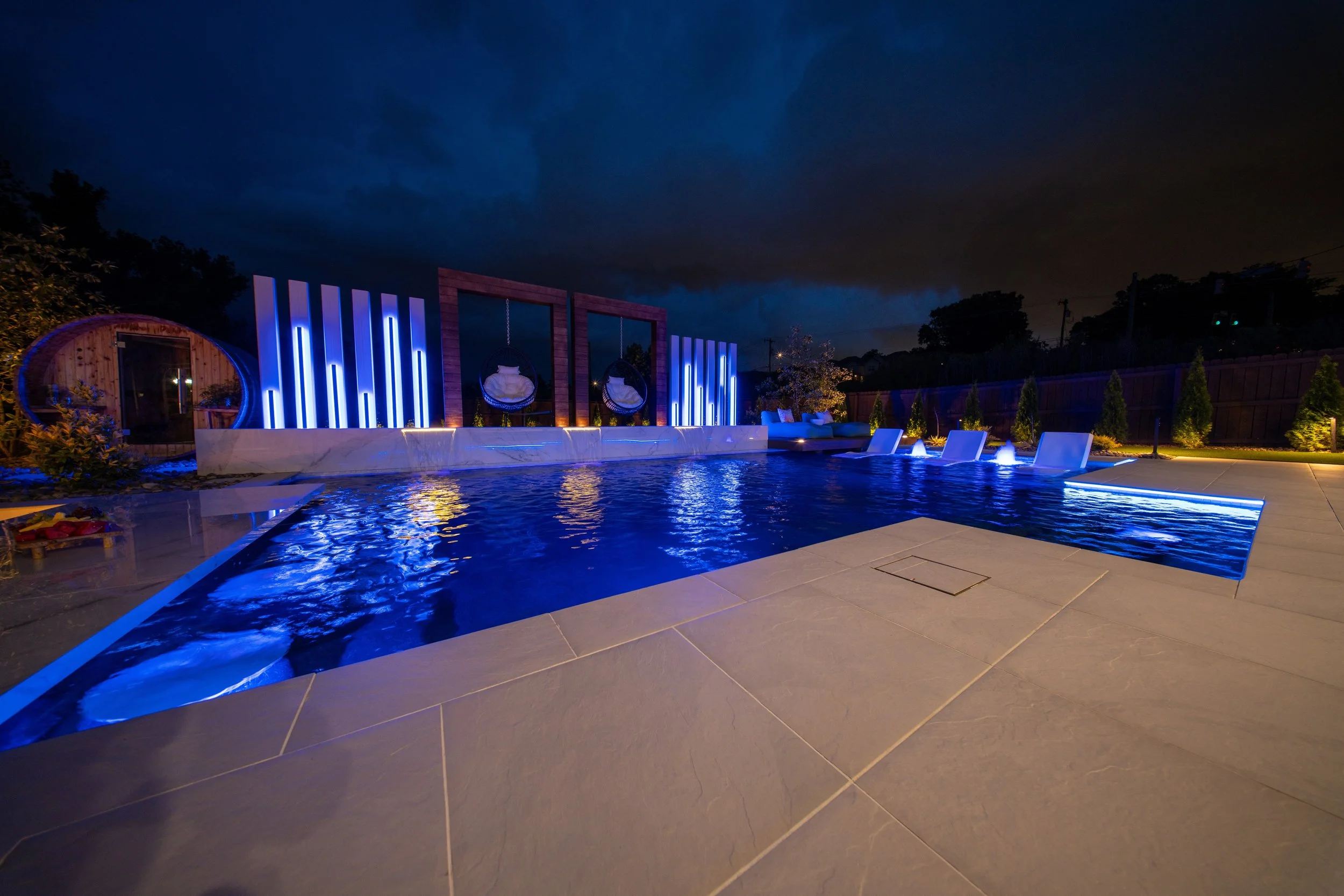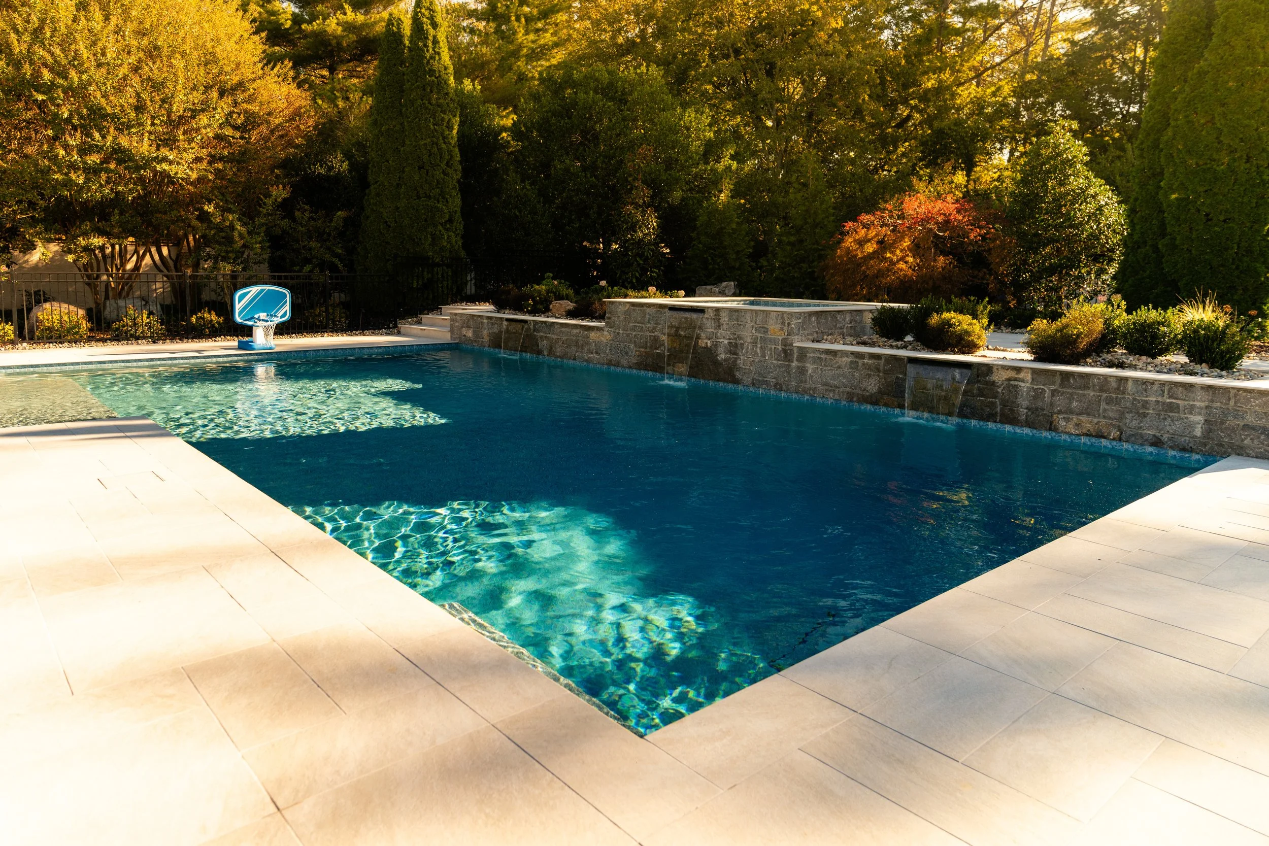 Gunite pools offer nearly unlimited design options, as the wet mixture can be sprayed into any shape or size. Common design options for gunite pools include geometric shapes like rectangles or squares, as well as freeform designs that mimic natural bodies of water. Gunite pools can also be constructed in any depth, from a shallow wading area to a deep diving pool. Features like waterfalls, fountains, and lighting can be added to enhance the aesthetics and functionality of the pool. In addition, gunite pools can be finished with a variety of materials, such as tile, natural stone, or plaster, to further customize the look and feel of the pool.